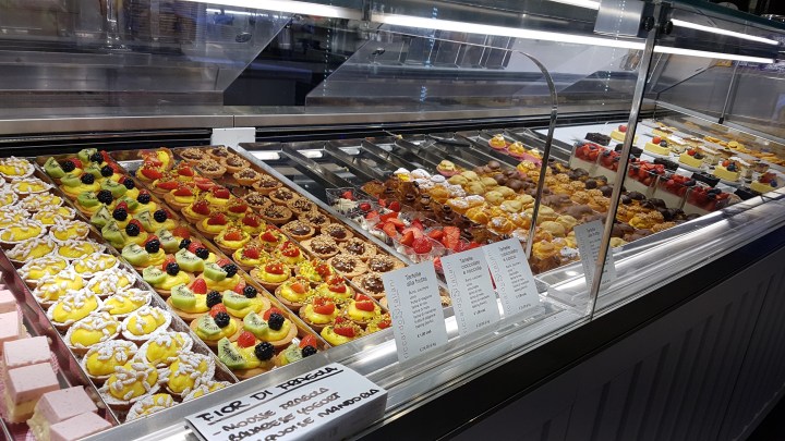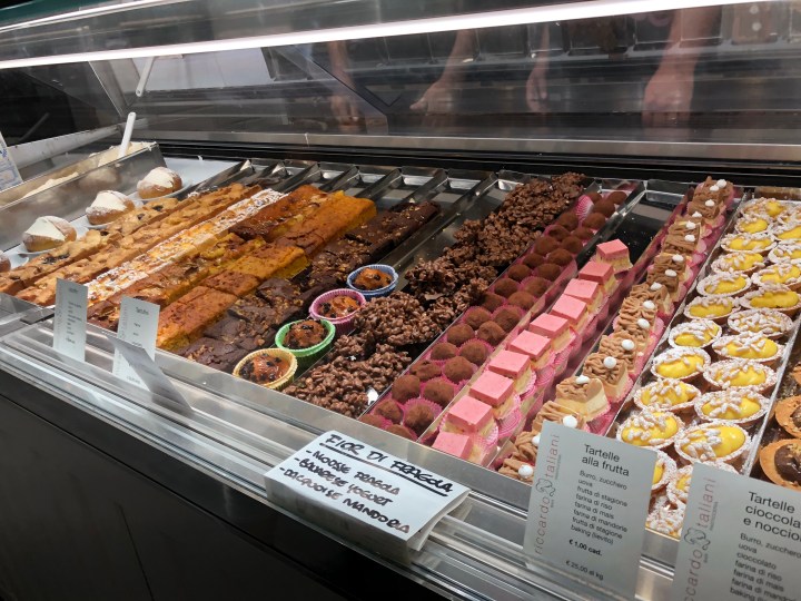 נתחיל מקפה -Ricardo המדהים. זאת הפעם הראשונה שראיתי מגוון כזה של עוגות יפות וטעימות כאחד, והכל ללא גלוטן. אני ובעלי אוכלים גלוטן. ניסינו להכנס לבתי קפה אחרים עם מאפים מרשימים אף יותר, אך מצאנו שהם מרשימים ביופי, אך לא בטעם, לכן חזרנו מוכנעים ל- Ricardo . גם האווירה השוררת בקפה – איטלקים מקומיים, שנראים כלקוחות קבועים, נכנסים לקפה של בוקר, מעבירים שיחה קולחת עם המוכרת ויוצאים בחיוך רחב – כל זה החזיר אותנו לשם (היינו סך הכל 8 ימים, אז היה זמן לשינוי דעה 😊 ).