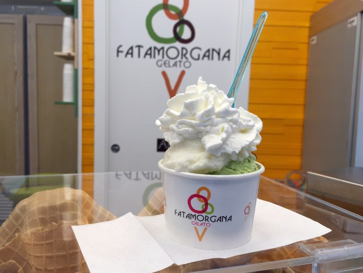 לא כך המקרה של Fatamorgana – כן, זאת הגלידה הכי טעימה שאכלתי אי פעם! חוץ מזה, גביע ללא גלוטן שהם מספקים, הוא גביע ופל איכותי ולא נראה כשלל הגביעים התעשייתיים שמתהדרים בהם הג'לטריות בארץ וברומא.