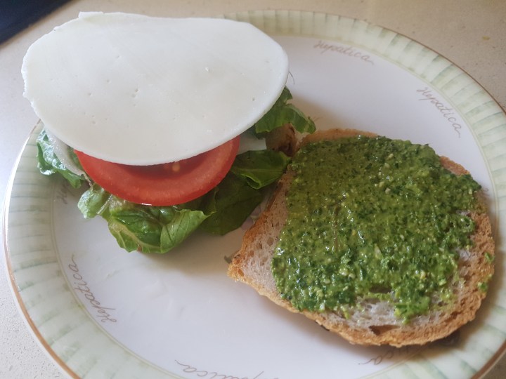 לחם טעים, פסטו וגבינת מוצרלה (ויתרתי על הירקות כי אתם ממהרים..) יסדרו לכם את הבוקר ויהפכו אותו לנפלא!