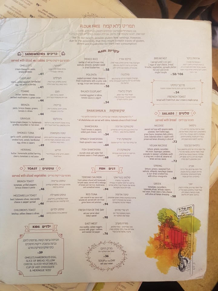 אומנם במוזאון יש בית קפה נחמד עם סלטים, פשטידות וקינוחים, אך בחרנו לנסוע לבית קפה בן עמי בו יש תפריט נטול גלוטן.