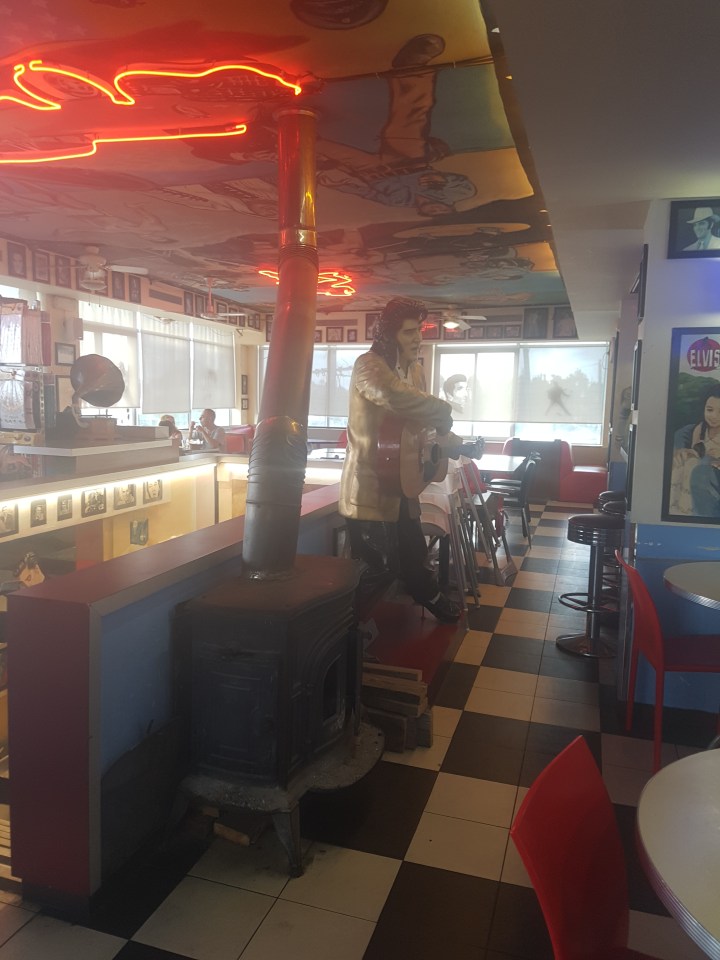 בדרך הביתה עצרנו בפונדק אלוויס. זוהי מסעדת דרכים, הנמצאת בתחנת דלק נווה אילן ומוקדשת כולה לזמר אלוויס פרסלי. הקירות עטופים בציורים, תמונות ופריטים מעולמו של אלביס.