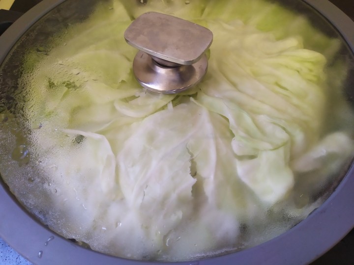 חשוב מאוד להשאיר את התבשיל על האש מספיק זמן כדי שיתבשל כמו שצריך. לי לקח כשעתיים (לפי אנה, שעה וחצי). בישלתי, על אש נמוכה, עד שעלי הכרוב הפכו להיות כמעט שקופים. אחרי כשעה וחצי, הרמתי את עלי הכרוב וטעמתי, ולפי הטעם החלטתי כמה להמשיך עוד לבשל.
