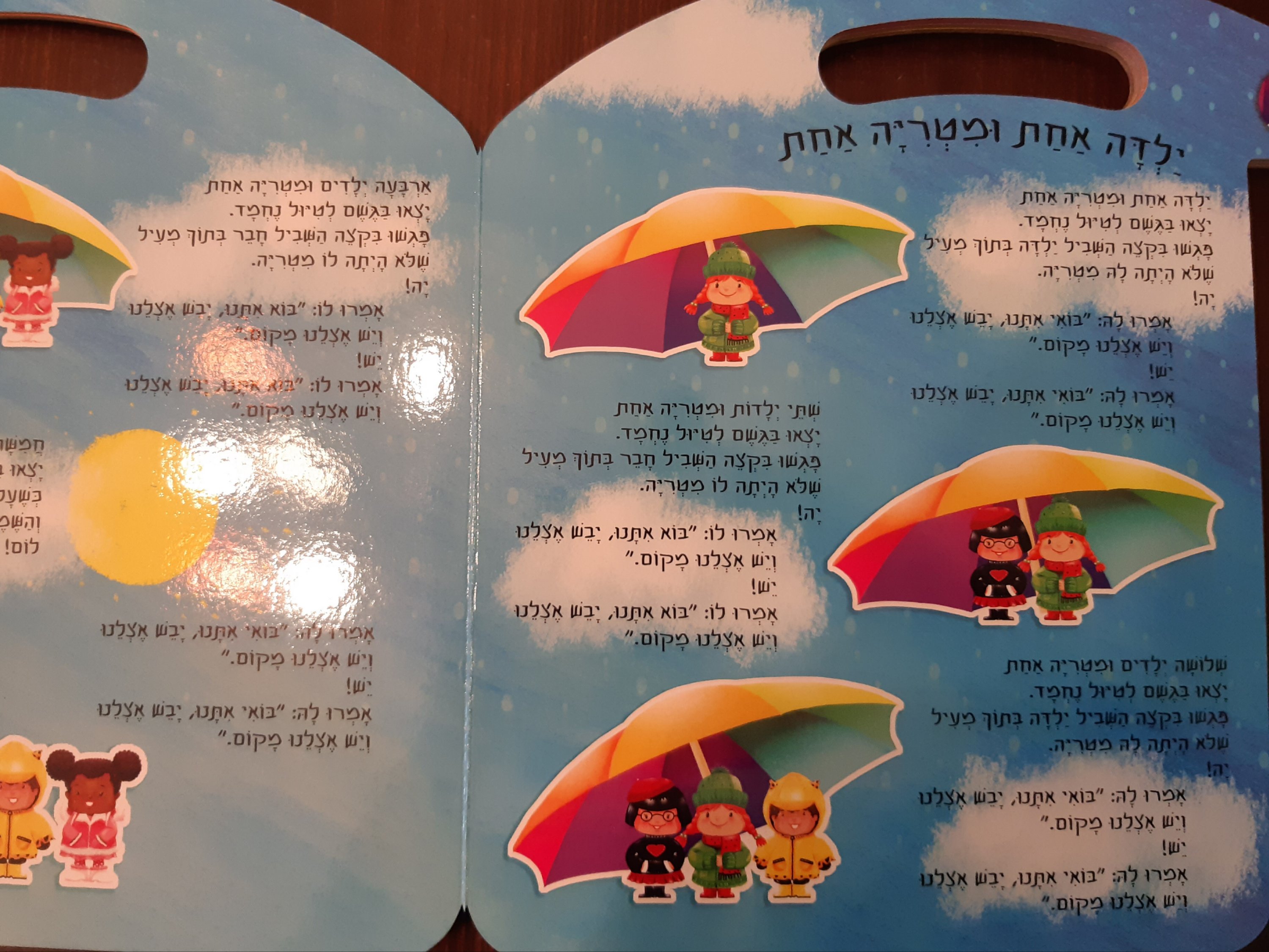 להבדיל מספרים מנגנים אחרים – זהו ספר משחק ולימוד גם יחד. כל שיר בו בא ללמד את הפעוטה נושא אחר: חלקי גוף, צבעים, מספרים ועוד.