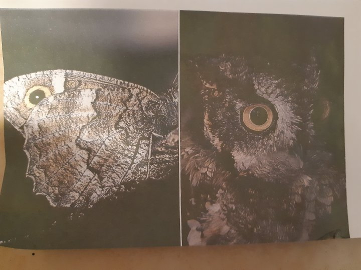 הראתי לבנות את התמונה שממחישה איך העיניים המצויירות על הפרפר דומות לעיניים של ינשוף.