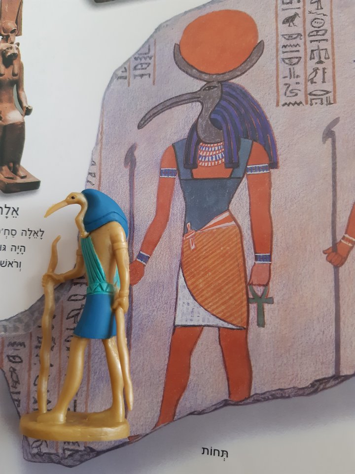 ספינקס, מסכת תות, פירמידות, מומיה, תחות, אנוביס, אמולט של אנוביס, איזיס (שימו לב, בתמונה שלמעלה, כתוב ליד כל צעצוע, את השם שלה באנגלית)