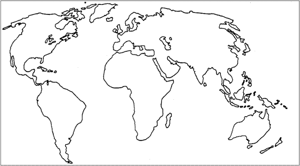 חיפשנו עם הבנות את הנהרות על הגלובוס וביקשתי מהן לצייר אותן על המפה הריקה שלהן – בערך באותו המקום כמו בגלובוס, באופן הבא: