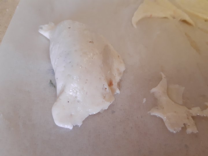 שלב 1 (צריך להשתדל לא לשים יותר מדי מילוי, אחרת הכיסון לא נסגר טוב)