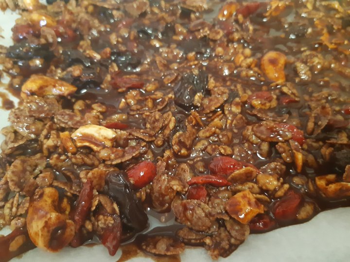 מוסיפים את שאר המצרכים, מלבד פצפוצי האורז, ומערבבים.
