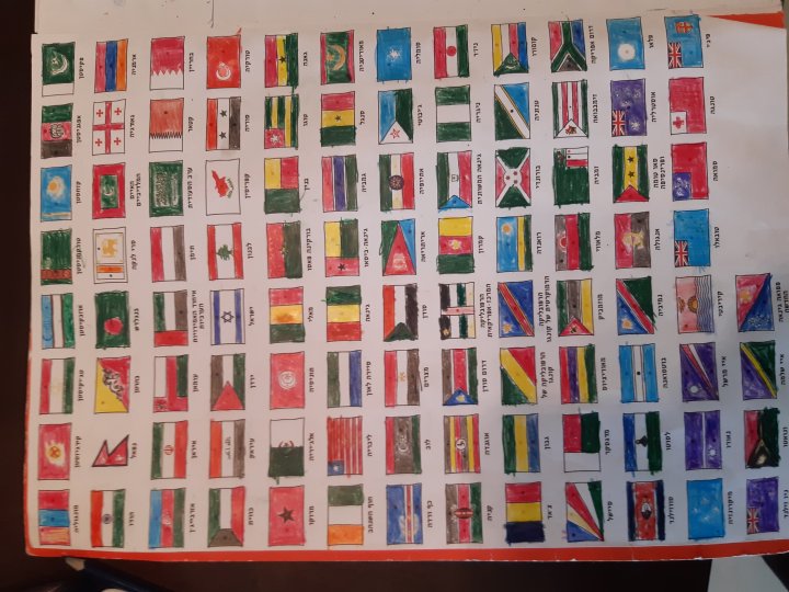 כדי שהדגלים יראו בצורה אסטתית, עברתי גם עם עפרונות על חלק מהדגלים שבתי צבעה. לפעמים גם תיקנתי את הצבע שבחרה בו, לדוגמא כחול שהיה צריך להיות טורקיז.