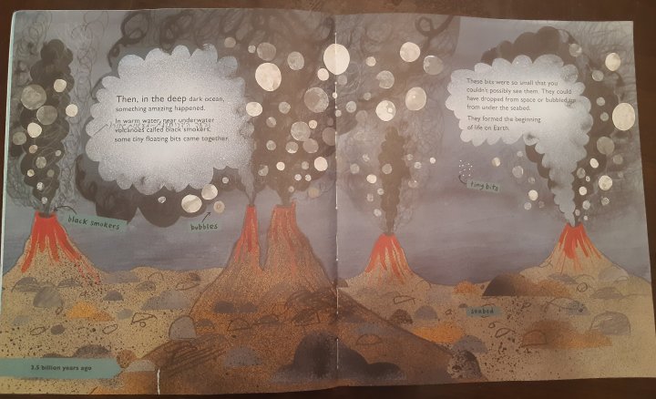 אני קניתי את הספר באתר Bookdepository ותרגמתי את חלקו כדי שתוכלו לקנות אותו, להראות לילד את הציורים ולספר לו. בצורה זו גם העברתי את החומר לילדיי. בפוסט השלישי שלי בנושא, אפרסם את הסיפור של הווצרות החיים, לפי הספר הזה.