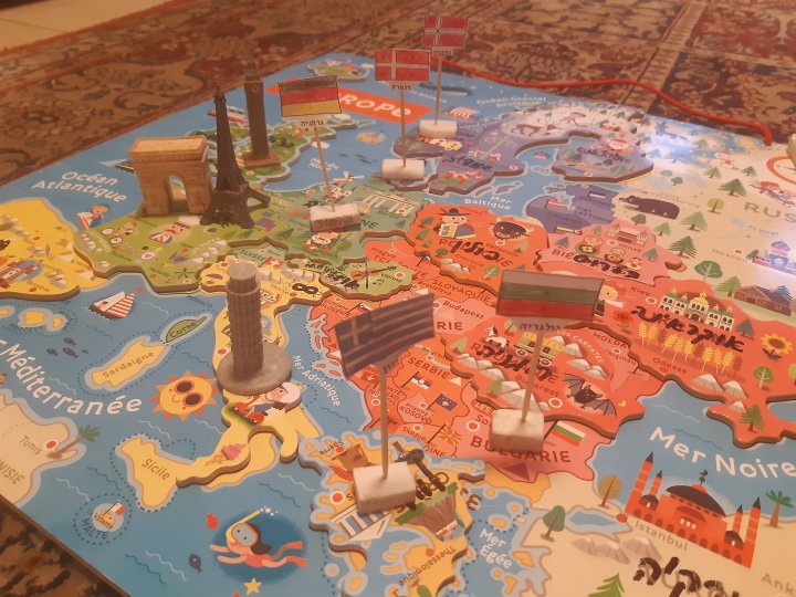 יש לו חסרון. הכיתובים עליו הם בצרפתית. (בכדי לעקוף את הבעיה, פשוט רשמתי עם טוש שחור קבוע את השמות של המדינות על כל חלקי הפאזל)