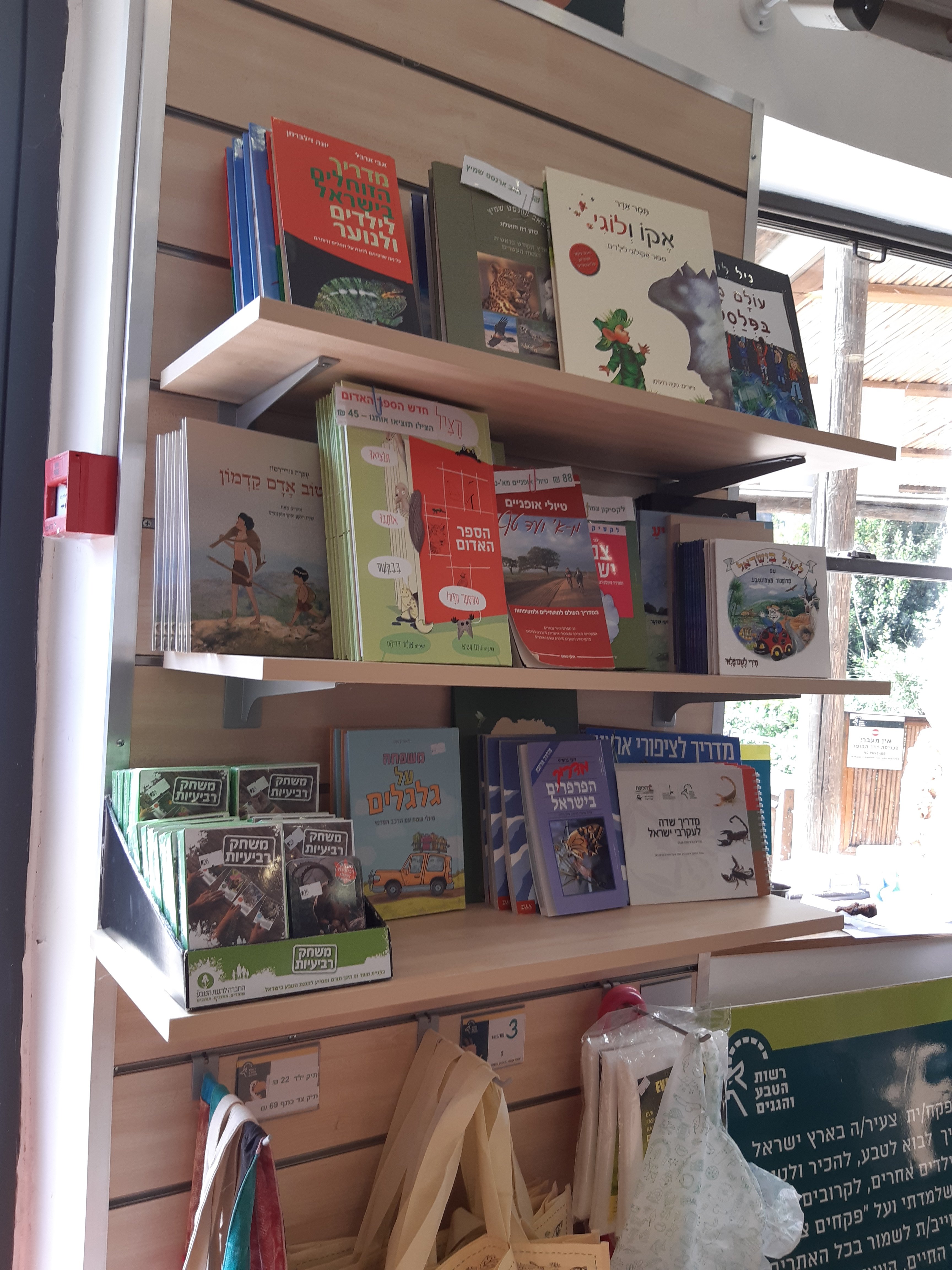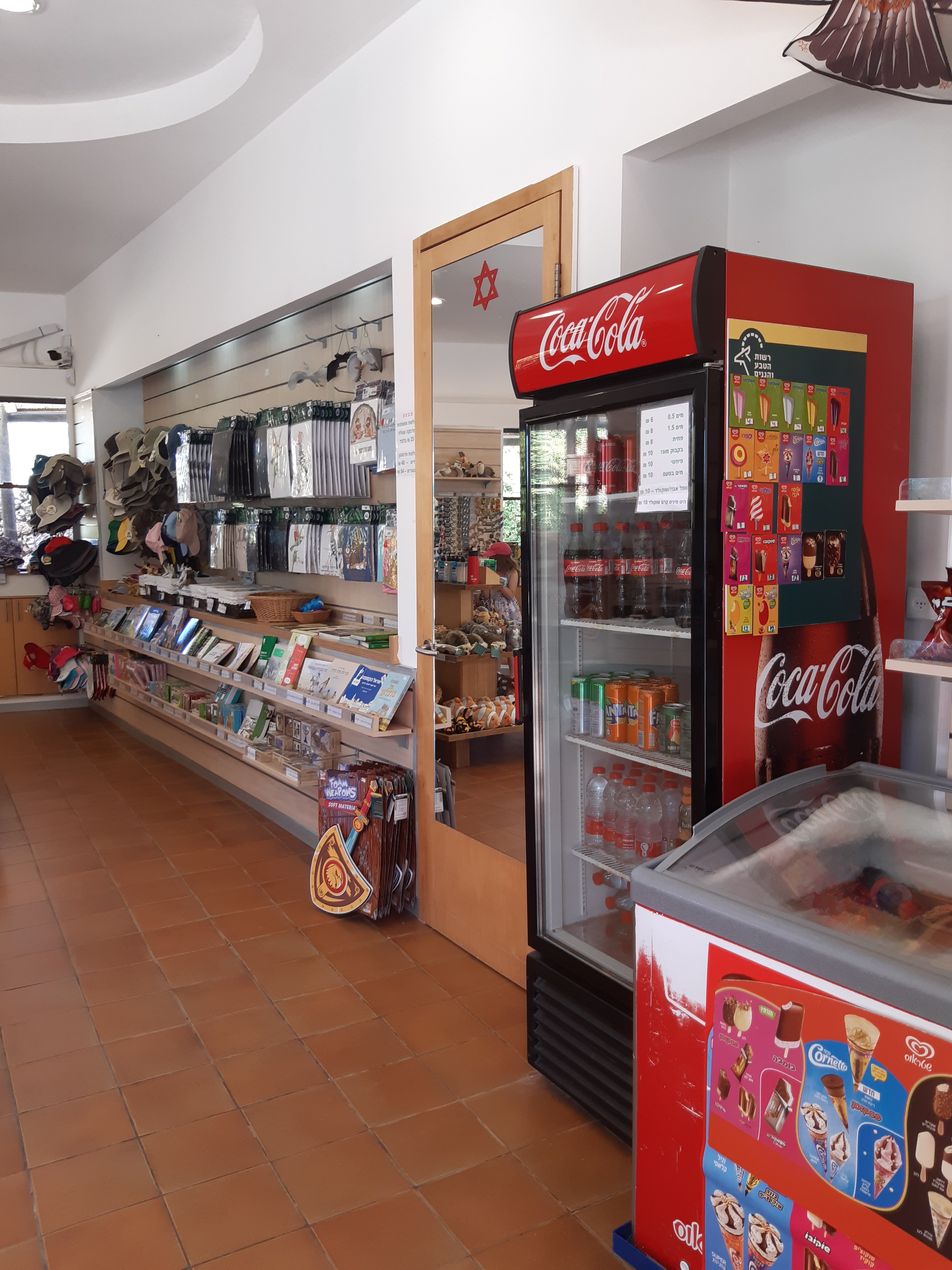 בכניסה, כרגיל, עברנו דרך חנות המזכרות של הרשות, שבשנים האחרונות הפכה להיות יותר ויותר מעניינת. מלבד גלידות, חטיפים וקפה, אפשר היה לקנות בה ספרים, משחקים וצעצועים מפתחים לילדים. אנחנו קנינו, בסוף הביקור, ספר נחמד, למזכרת, "בקר טוב אדם קדמון" של עפרה גורי רימון.