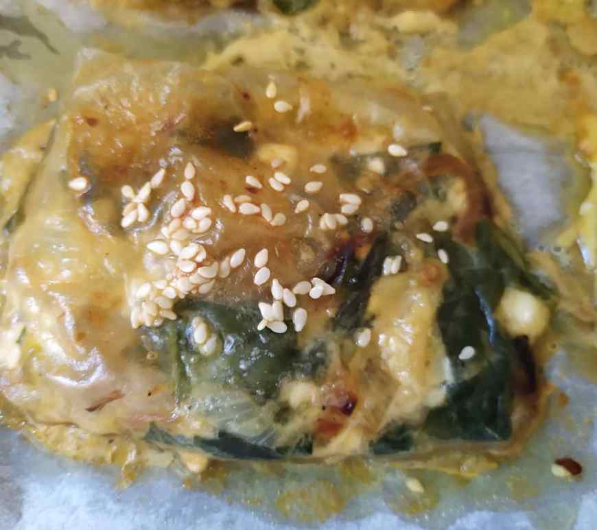מאפה (בורקס) תרד, בצל וגבינה מדפי אורז